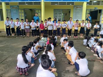 Buổi lễ có Ông Lê Tuấn Vũ Bí thư xã đoàn xã Long Hưng, thầy Trần Thanh Dẫn hiệu trưởng trường Tiểu học Hưng Phú B cùng với các thầy cô và học sinh của trường.